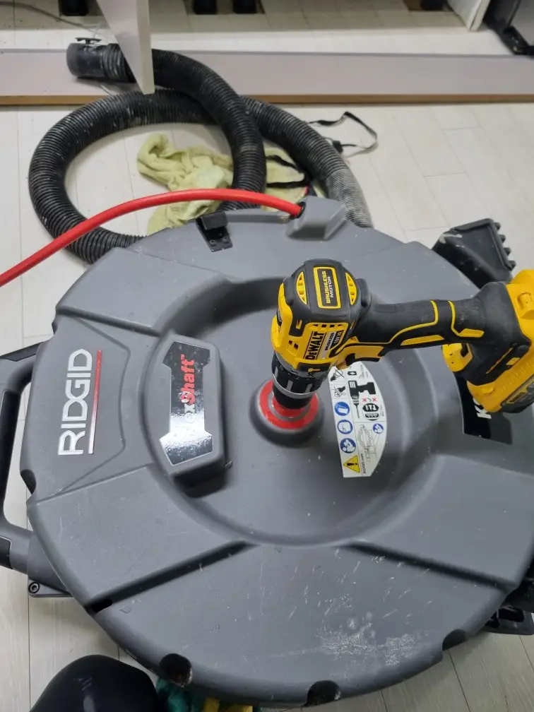 먼저 작업 구역에 방수포나 수건을 깔아 주변을 보호합니다. 배관을 뚫을 때 오수와 찌꺼기가 튈 수 있기 때문입니다. 샤프트 케이블을 배수구나 트랩 연결부를 통해 배관 안으로 천천히 밀어 넣습니다.